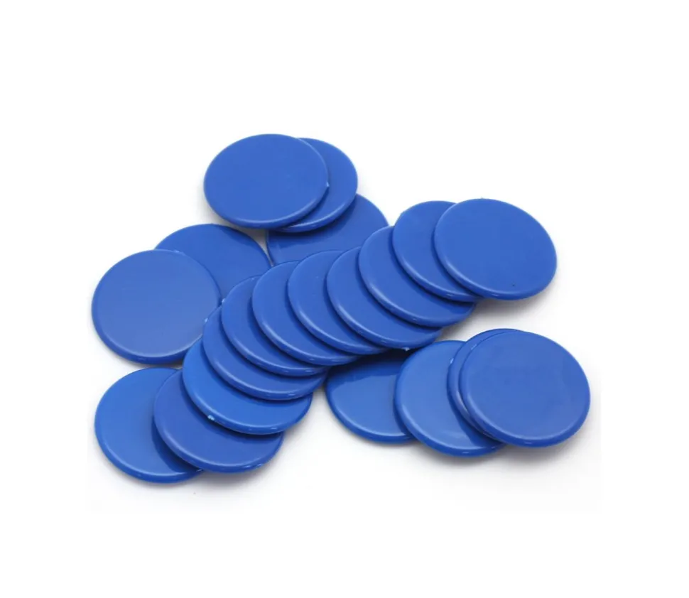 Set de 10 jetons de jeu en plastique de 30 mm de diamètre et plat de 2.65 mm d’épaisseur.