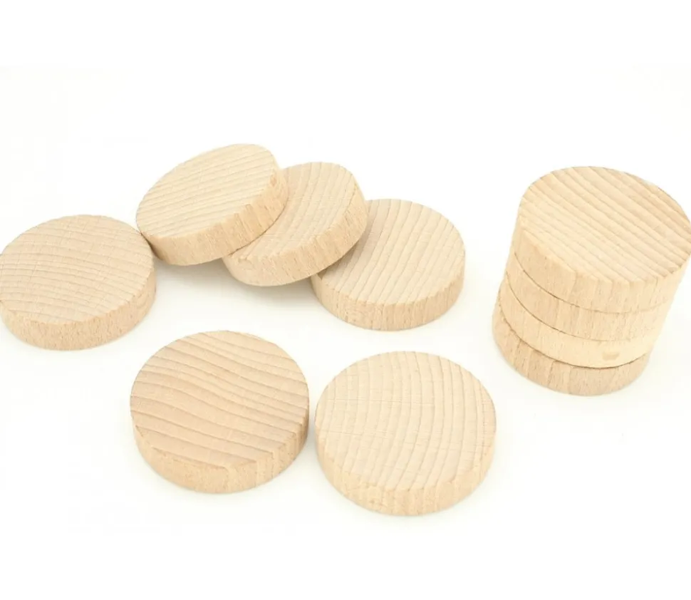 10 palets en bois naturel (hêtre) 5.2 cm x 1.3 cm pour tous vos jeux (notamment palets qui conviennent pour le billard hollandais). Achat facile par lot de 10. Grand palet de jeu d’environ 5 cm.
