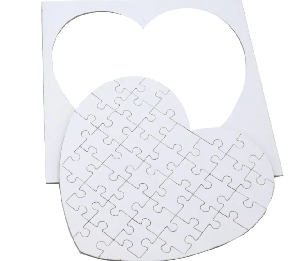 10 Puzzles cœur avec cadre en carton blanc de 40 pièces à personnaliser.