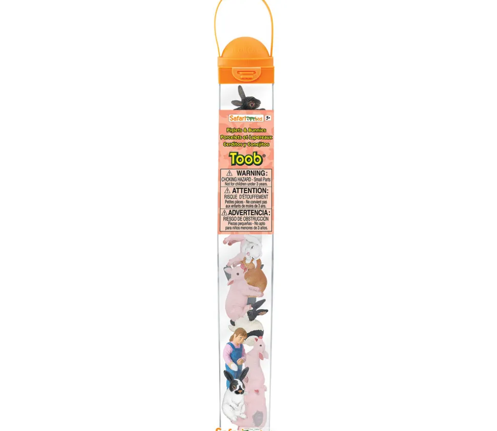 Tube de 11 animaux porcelets et lapins et 1 fermière en plastique comprenant :
