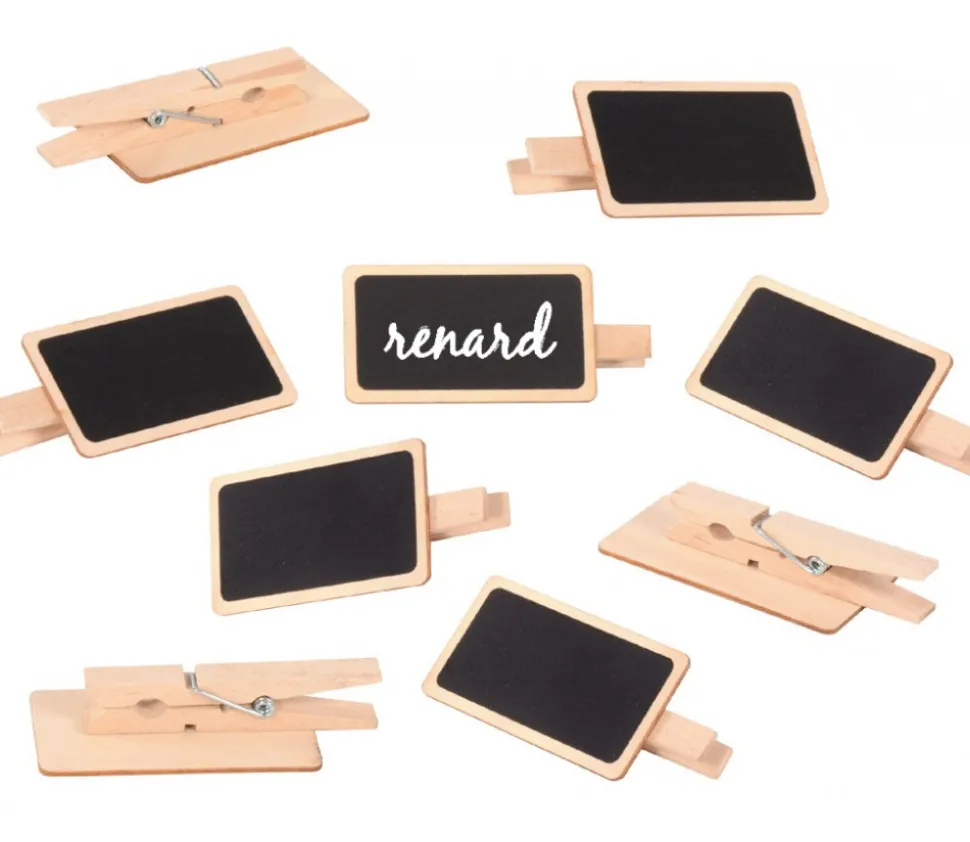 Lot de 12 Mini ardoises noires effaçables avec une pince au dos.