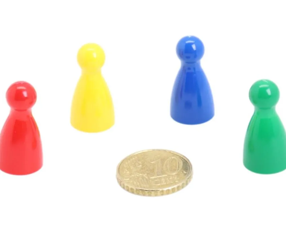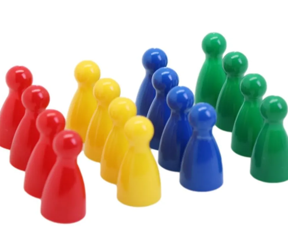 Pion en plastique en forme de quille. Set pour 4 joueurs (4 pions par joueurs).