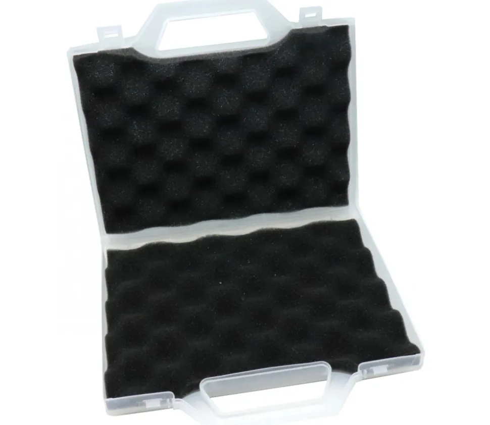 2 mousses de calage gris foncé avec alvéoles pour les (vendues séparément) ou tout autre boite de dimension minimum 23 x 17 cm. Les mousses épousent parfaitement la forme de la valisette, forme légèrement incurvée au niveau de la poignée.
