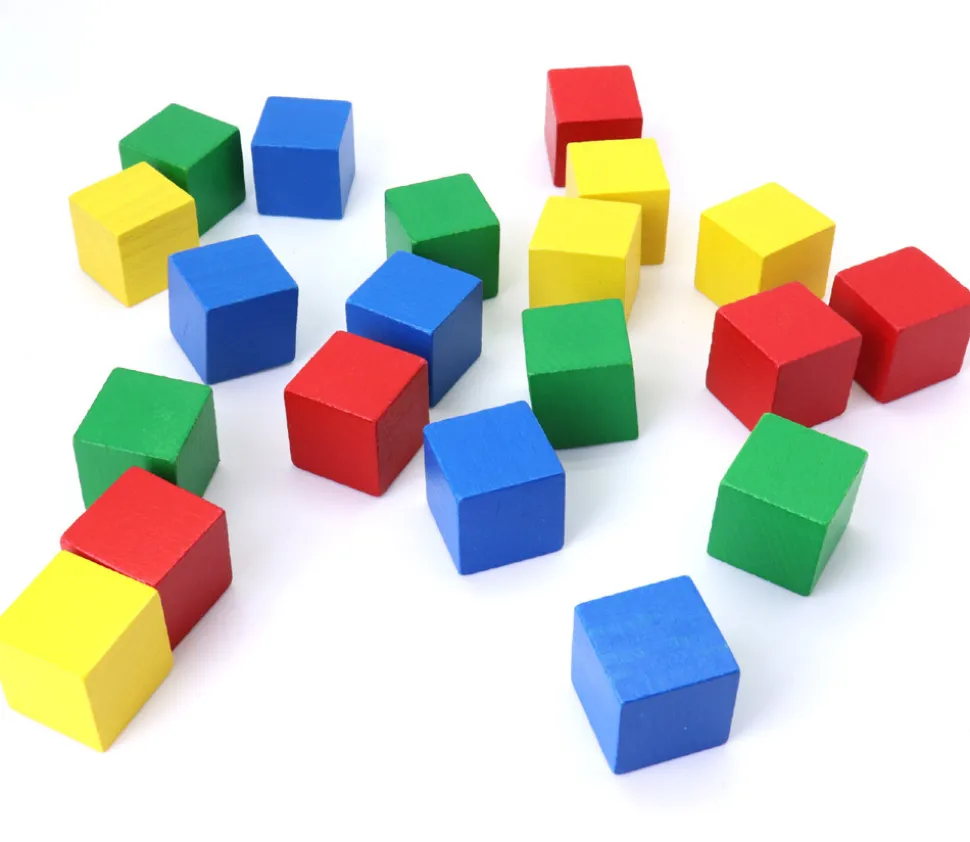 20 Cubes en bois de 3 cm de côté colorés. Lot de 20 cubes colorés pour jeux et construction. Dimensions 30x30x30 mm. Lot de 20 cubes de 4 couleurs différentes (5 cubes bleus, 5 cubes verts, 5 cubes jaunes, 5 cubes rouges).