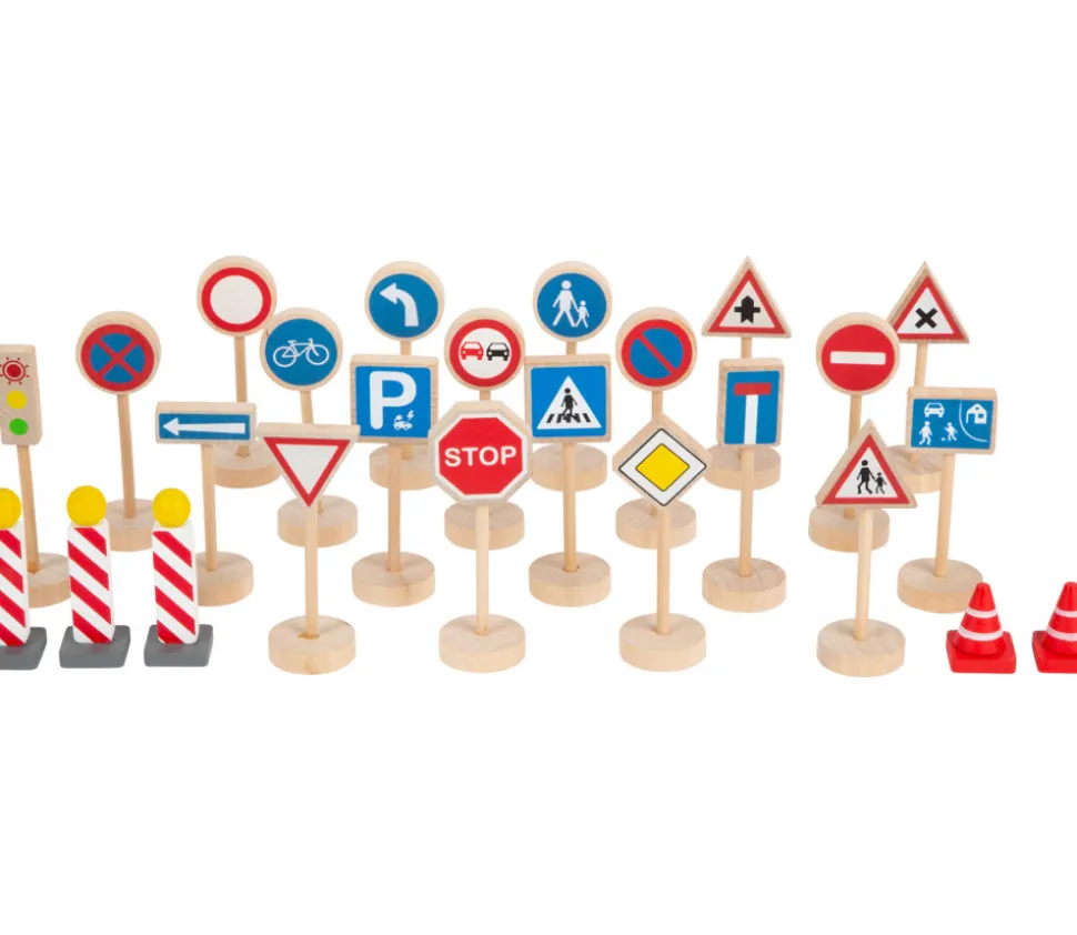 Accessoires pour jouer et apprendre le code de la route en s’amusant. (Panneaux stop, sens interdit, sens unique, feu tricolore…)