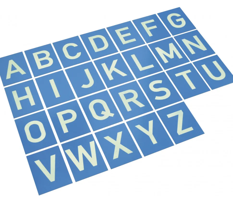 26 grandes lettres en relief sur cartes en bois de 12 x 16 cm. Plaques avec lettres rugueuses de A à Z pour l’apprentissage sensoriel. Les enfants pourront associer le tracé de la lettre et le visualiser, toucher avec les doigts pour bien assimiler la forme.