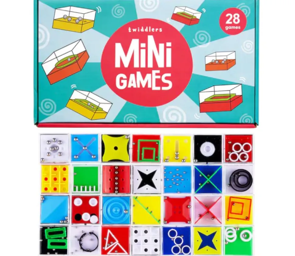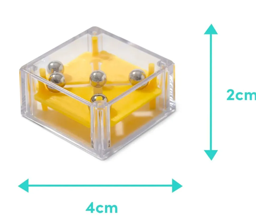 28 mini jeux de 4 x 4 x 2 cm avec billes et labyrinthes en plastique coloré enfermé dans des petites boites en plastique transparent