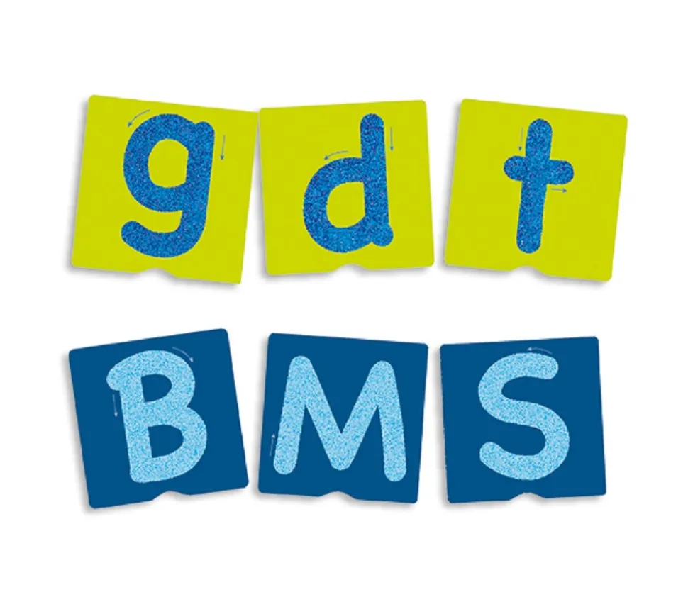 35 fiches tactiles en carton épais de 9 x 9 cm pour la découverte des lettres pour les enfants. Plaques cartonnées et colorées avec lettres rugueuses sable pour l’apprentissage par le toucher. Les enfants associent le tracé de la lettre, le visualise, touche avec les doigts pour mémoriser leur forme.