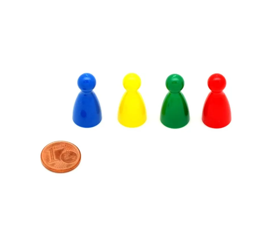Pion plastique coloré de 12 x 24 mm. Set de 4 pions : 1 rouge, 1 vert, 1 jaune, 1 bleu. Idéal et pas cher pour remplacer vos pions perdus. Pour les quantités à partir de 100 lots, les pions sont livrés en vrac par couleur.