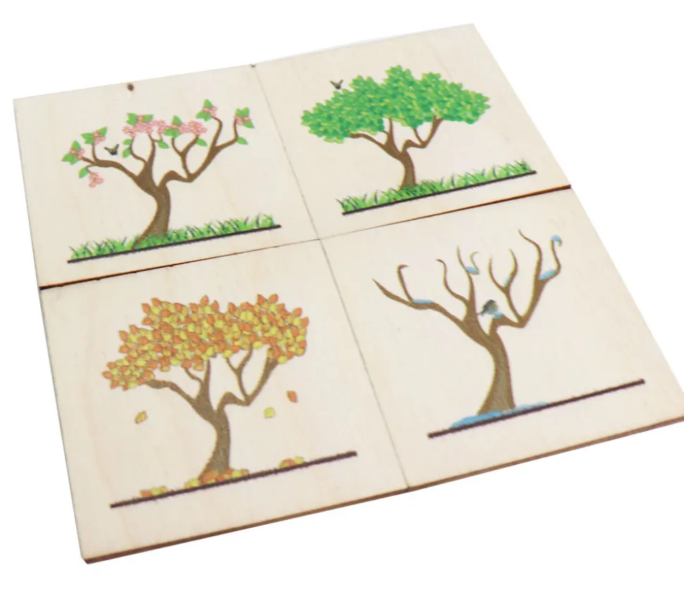 4 plaquettes en bois les 4 saisons pour vos jeux de société, jeux éducatifs, calendriers…