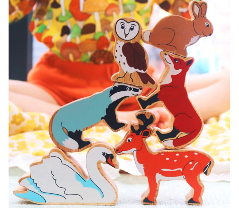 Partez à la découverte de la nature avec ce lot de 6 grands animaux en bois : hibou, lapin, renard, blaireau, cerf et cygne.