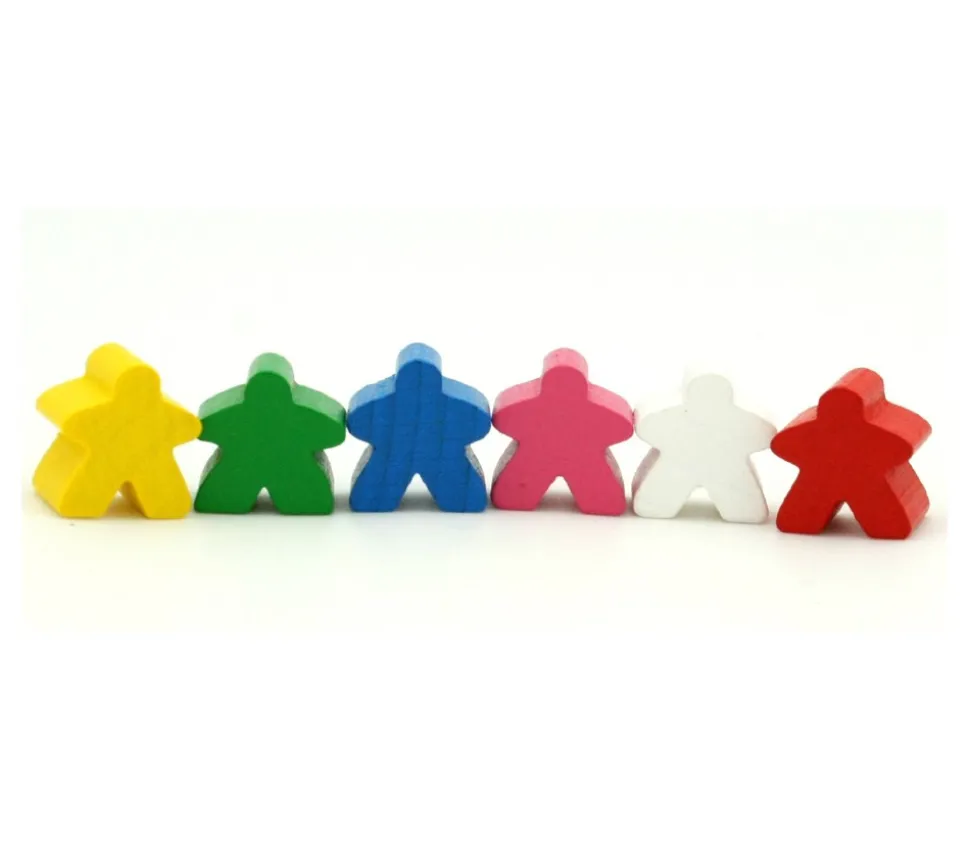 Lot de 6 couleurs : rouge, vert, bleu, jaune, blanc et rose. Personnages en bois pour joueur de jeux de société. Décorations, accessoires ou jeu.