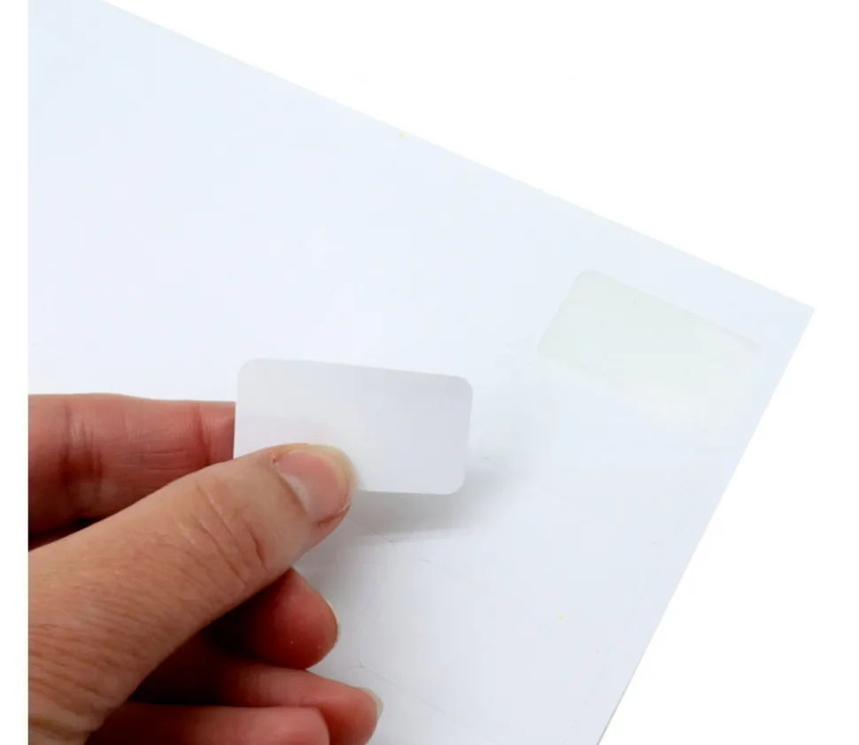 Autocollants rectangles de 38.1 x 21.2 mm de coté, blancs pour personnaliser plus facilement vos pions et jeux. Étiquette adhésive.