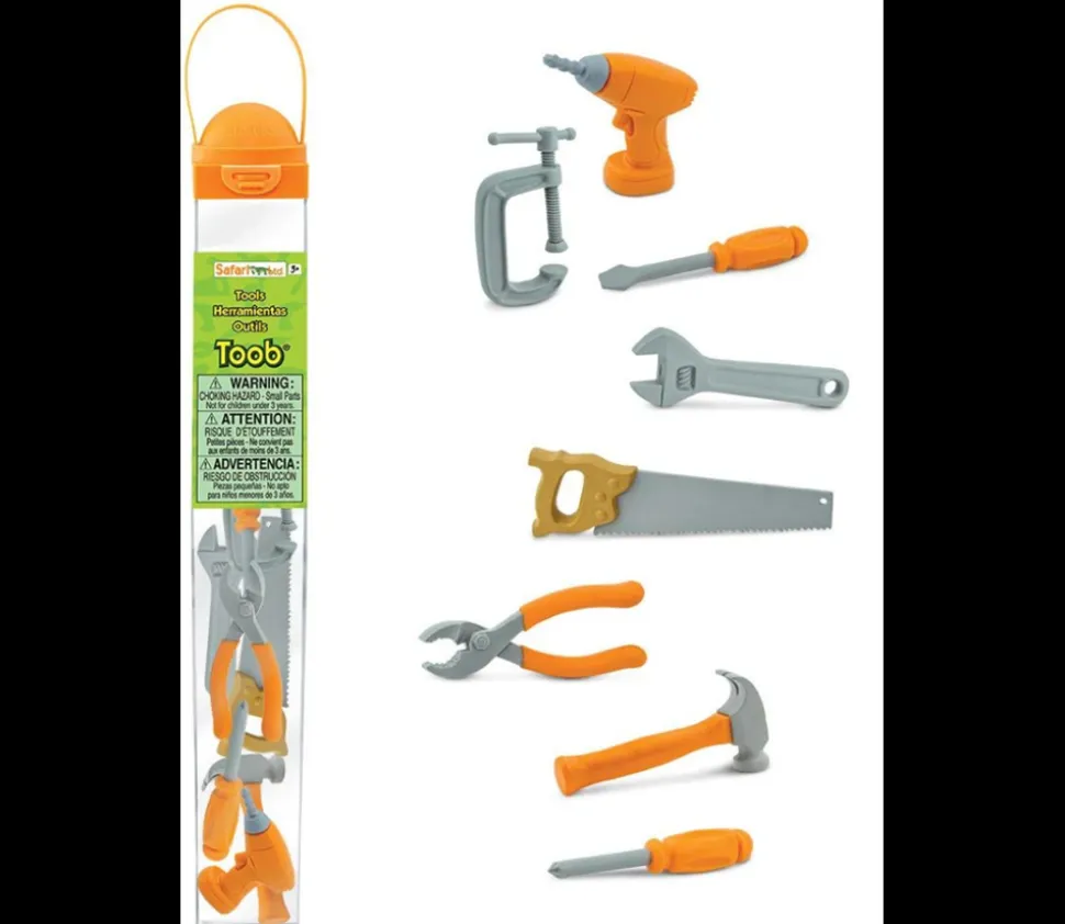 8 outils de bricolage taille miniature ; marteau, tournevis, pince, visseuse… Mini figurines de jeu d’environ 5/6 cm qui représentent les accessoires les plus connus du bricolage. Petits jouets pour les fans de bricolage. Articles plastiques colorés qui sont livrés dans un tube de rangement transparent.