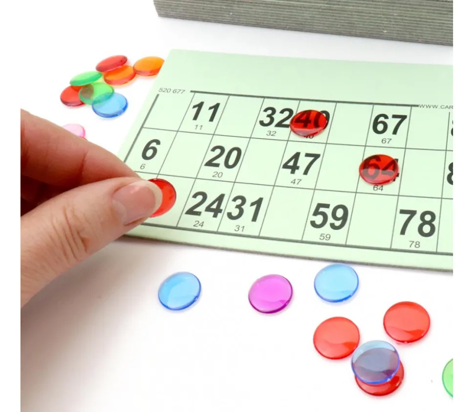 96 cartons jeu de loto en carton rigide de 14.6 x 10.3 cm. Cartes taille standard couleurs caramel, rose, violet, vert, bleu, jaune. Epaisseur 1.5 mm. Spécial associations et organisation de loto. Numéros clairs et bien lisibles, cases adaptées aux pions. Cartes avec numéros différents sur chaque carte. Cartons de loto de qualité. Fabrication en France.