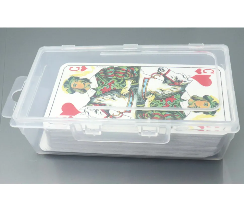 Boite plastique vide pour ranger vos accessoires de jeux (taille idéale pour ranger un jeu de tarot ou 1 jeu de 54 cartes des différents accessoires). Pratique pour ranger pion de jeux, cartes à jouer, dés, sabliers… Dimension boite transparente : 130 x 76 x 42 mm (dimension intérieure : 118 x 58 x 33 mm – attention angles un arrondis). Boite plastique transparente vide avec couvercle intégré pour ranger matériel de jeux et accessoires éducatifs.