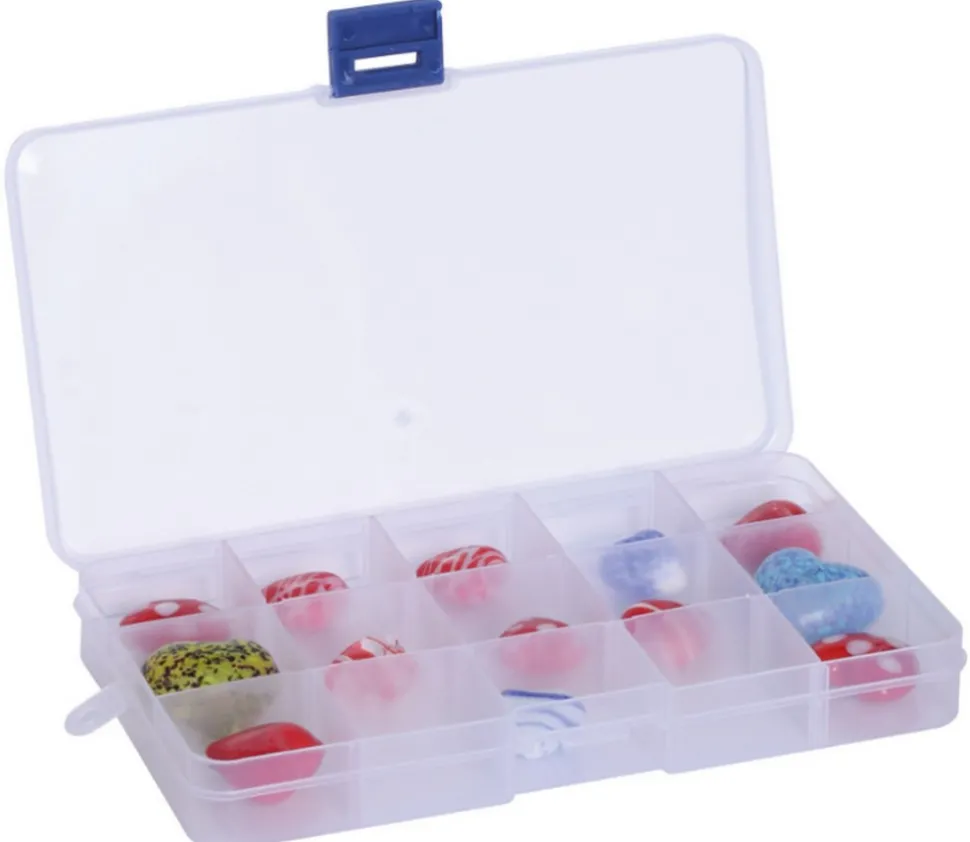 Cette boîte de rangement en plastique est pourvue de 15 compartiments, ce qui en fait l’accessoire de rangement parfait pour organiser et stocker une variété d’objets de petite taille.
