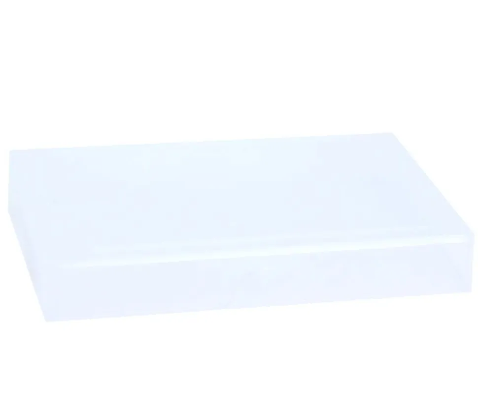 Boite en plastique transparente vide avec base et couvercle.