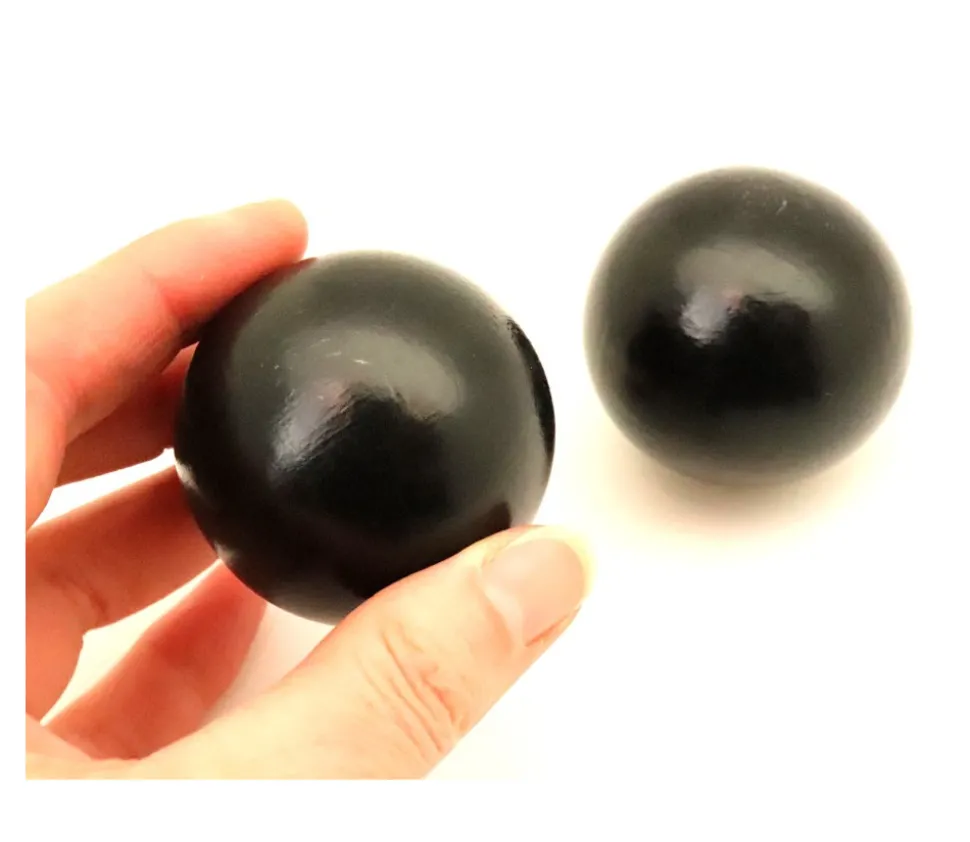 Boule noire de 5 cm en bois hêtre. Bille pleine de 50 mm de diamètre. Boules pour jeu, décoration ou bricolage. Boule ronde de 5 cm noire. Très belles billes. Achat de boules ou billes en bois à l’unité ou par lot. Balle ronde tournée. Cette dimension convient bien pour le remplacement des pièces de vos billards japonais.