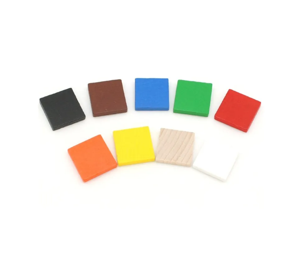Couleurs disponibles pour les jetons carrés : rouge, vert, jaune, bleu, blanc, brun, orange et noir