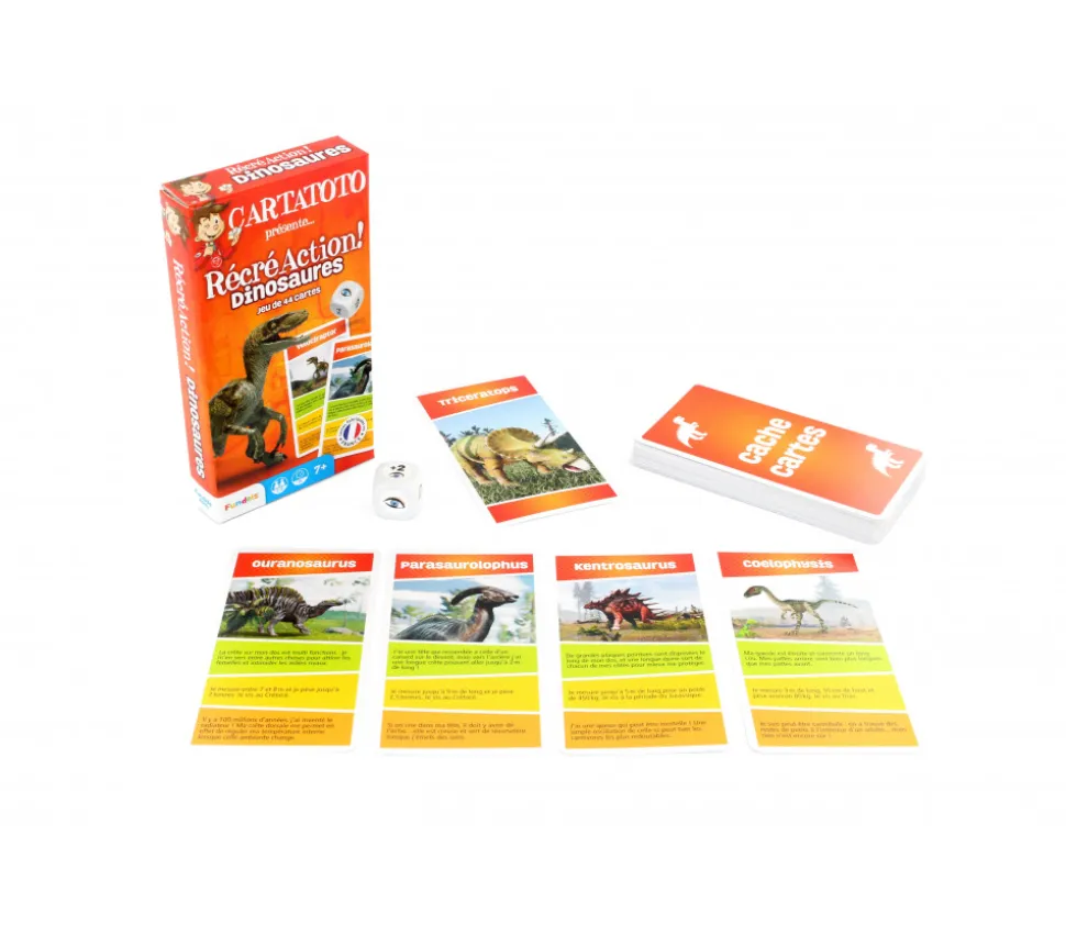 Récréaction cartatoto Dinosaures : Jeu de Cartes sur les dinosaures. Pour les fans de dinosaures. En apprendre encore plus sur les dinosaures et leur caractéristiques avec ce jeu de cartes. Jeu de société éducatif, il permet de servir de support de base à l’apprentissage.