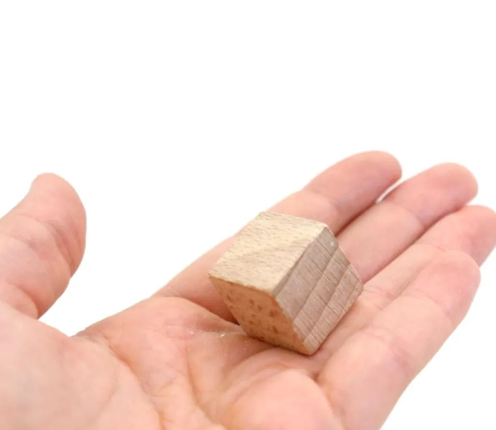 Cube en bois naturel de 2 cm de côté. Petit cube en bois de 20 mm pour jeux. Dimensions 20 x 20 x 20 mm. Les cubes sont vendus à l’unité Ces cubes sont parfaits pour des jeux de construction, le bricolage ou des exercices sur le volume en mathématique. Pièce de Hêtre.