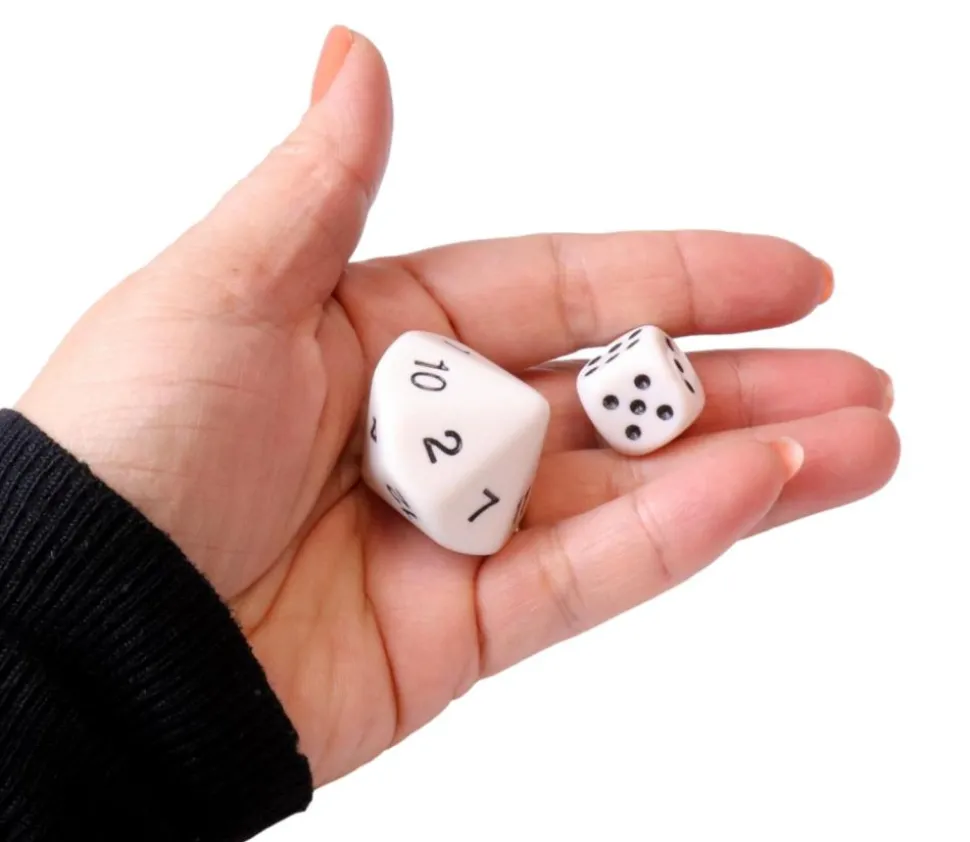 Ce gros dé spécial contient 14 faces triangulaires avec les chiffres de 1 à 14.