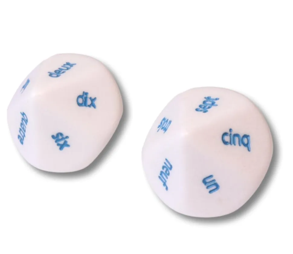 Dé spécial avec 10 faces (mini triangles isocèles de 1.8 x 1.8 x 1.5 cm) nombres en français. Dé à jouer pour formation et jeux en classe CP / CE1. Accessoires de jeux pour apprentissage originaux. Adaptez vos jeux de société pour des règles spéciales. Peut-être utilisé pour accélérer les jeux de parcours comme le jeu de l’oie ou le jeu des petits chevaux en anglais.