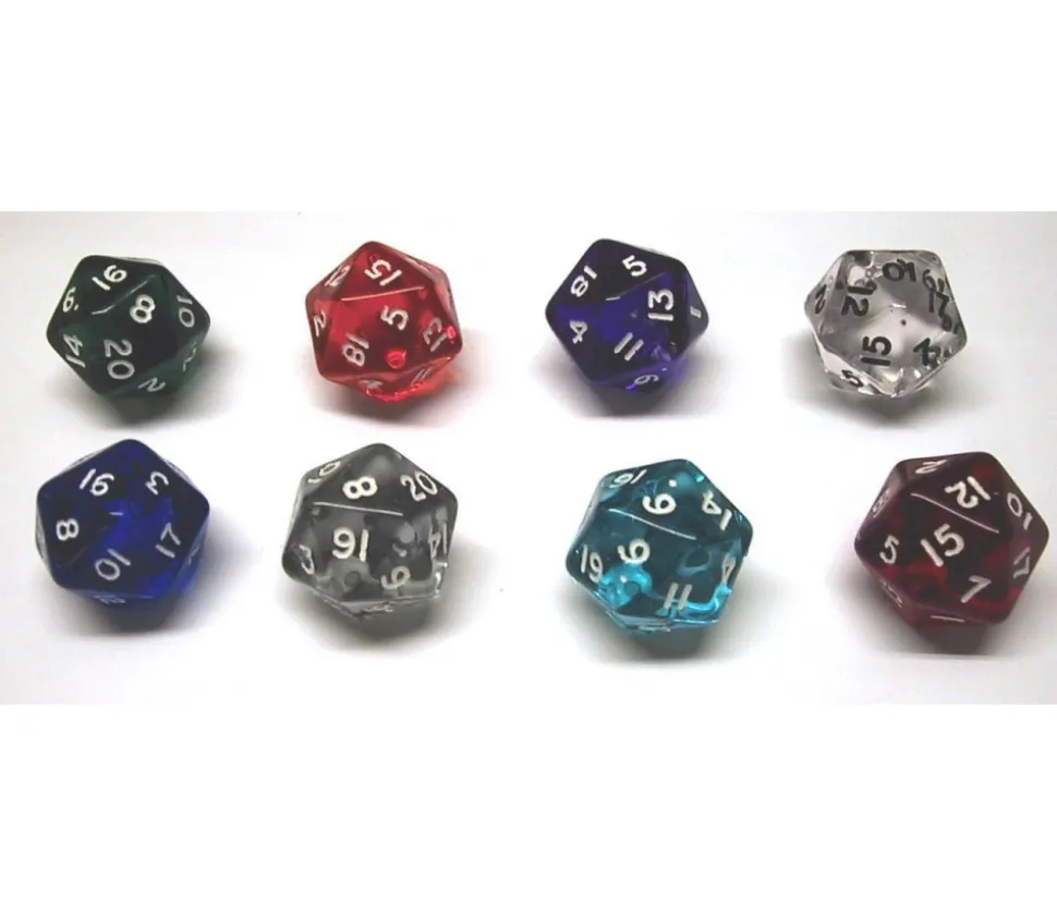 Dé avec 20 faces. Dé à jouer multifaces, idéal pour les jeux de rôles et certains jeux. Dé pour jeu translucide. Couleur transparente. D20 avec les chiffres de 1 à 20.