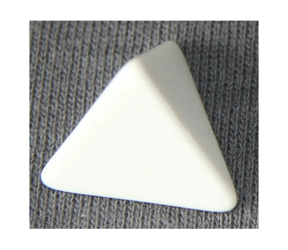 D4 pyramide blanc avec des côtés triangulaires de 3 x 3 x 3 cm sans marquage.