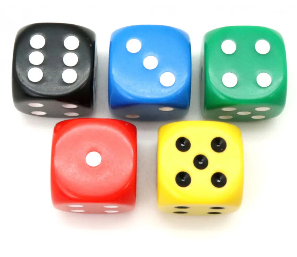 Dé à jouer en plastique classique 2.2 x 2.2 cm de côté numérotés de 1 à 6 avec des points.