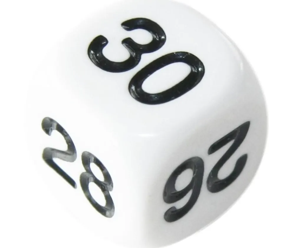 Dé de 25 à 30. Dé avec des grands nombres. Dé spécial pour aller jusqu’à 30.
