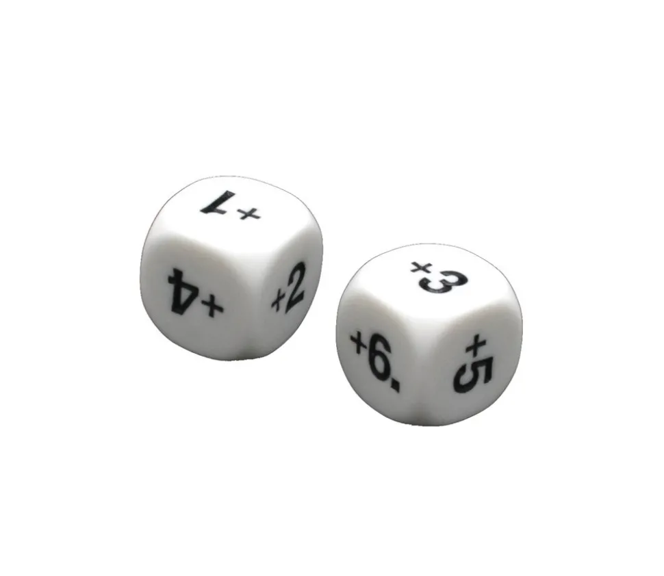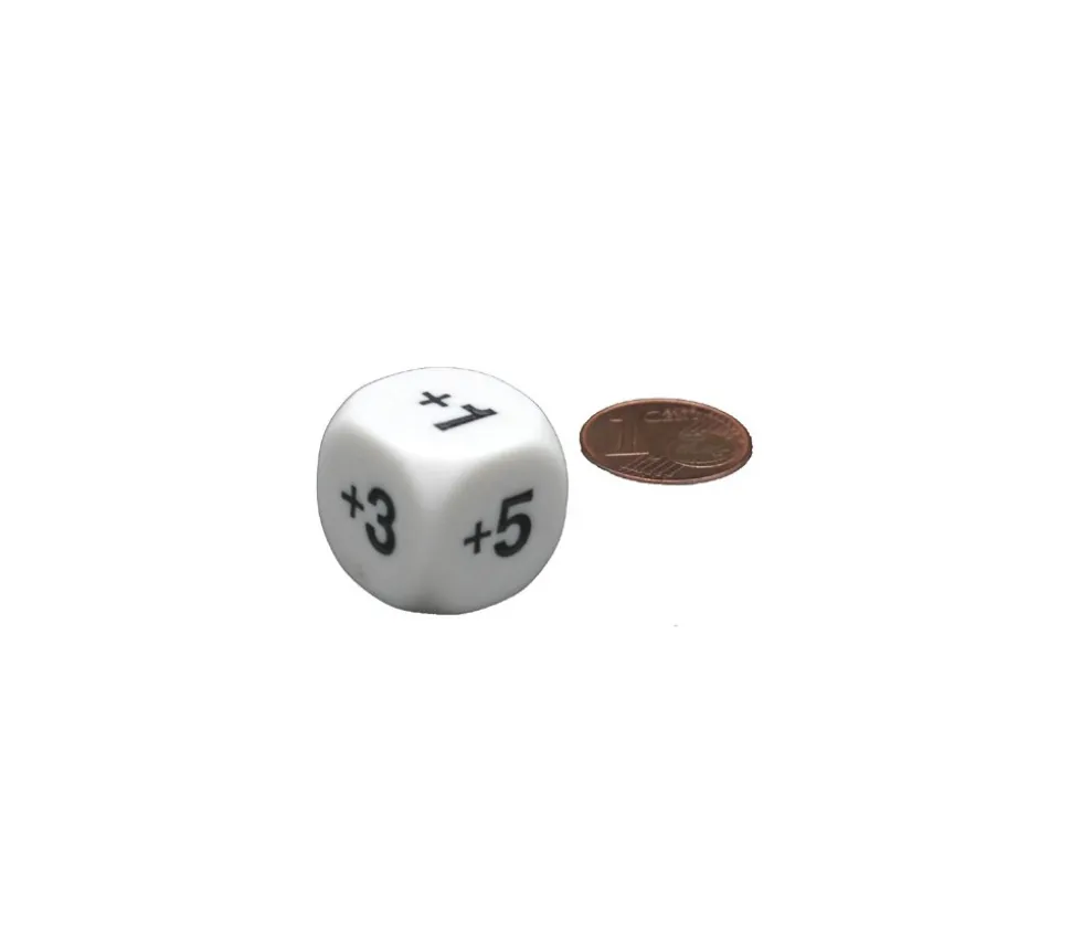 Dé additionner +1 +2 +3 +4 +5 +6. Dé à jouer addition avec faces +1 à +6. Dé blanc de 16 mm spécial pour math ou jeux. Dé idéal pour ajouter des points de vos jeux de société ou jdr, très sympa aussi pour faire des jeux mathématiques en classe.
