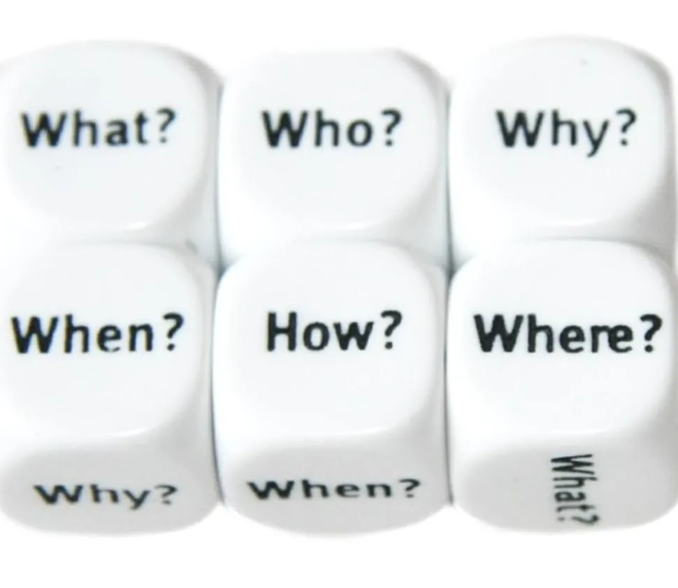 Dé anglais avec les mots what, how, when, where, who, why