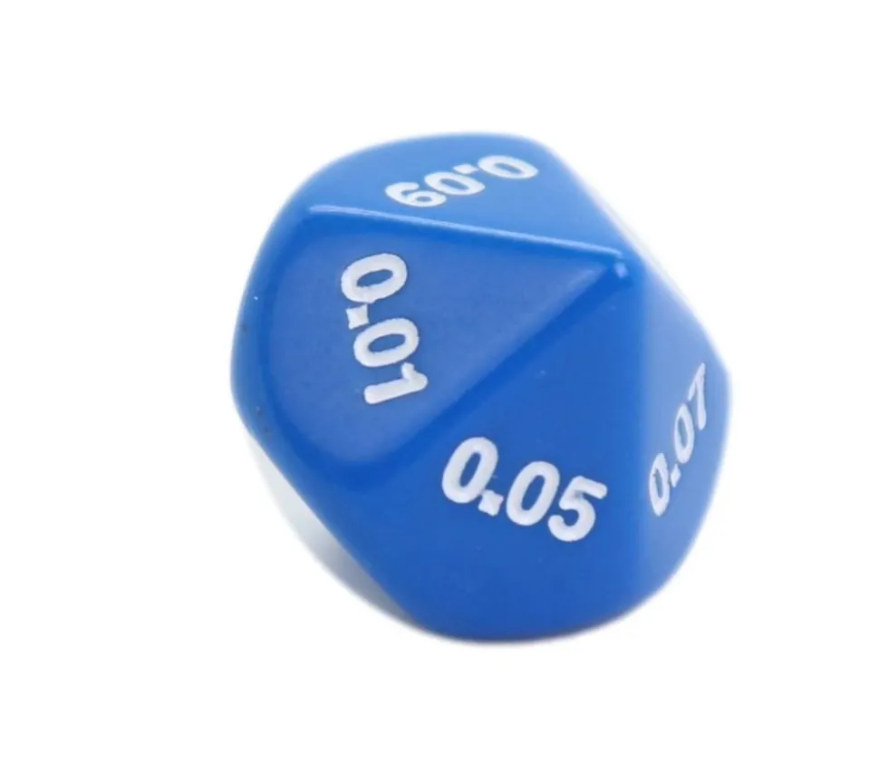 Dé décimal 0.01 0.02 0.03 0.04 0.05 0.06 0.07 0.08 0.09. Dé à jouer blanc 10 faces de 21 mm de diamètre avec des chiffres à décimal. Dés pour jeux mathématiques en classe. Centième de décimal.