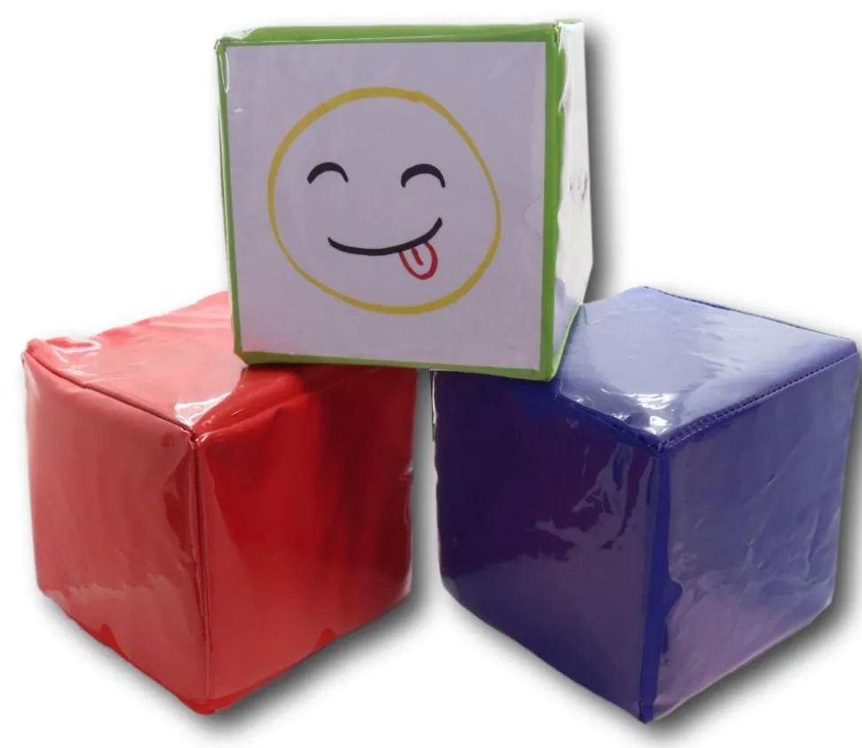Dé à jouer en mousse recouvert d’une toile colorée verte lavable de 15,5 x 15,5 cm. Chaque face a des glissières transparentes pour glisser le contenu de votre choix.