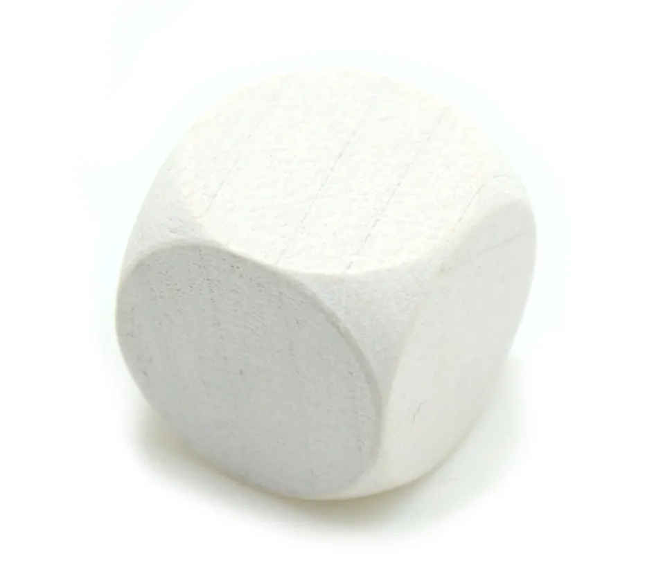 Dé en hêtre teinté blanc, vendu à l’unité.