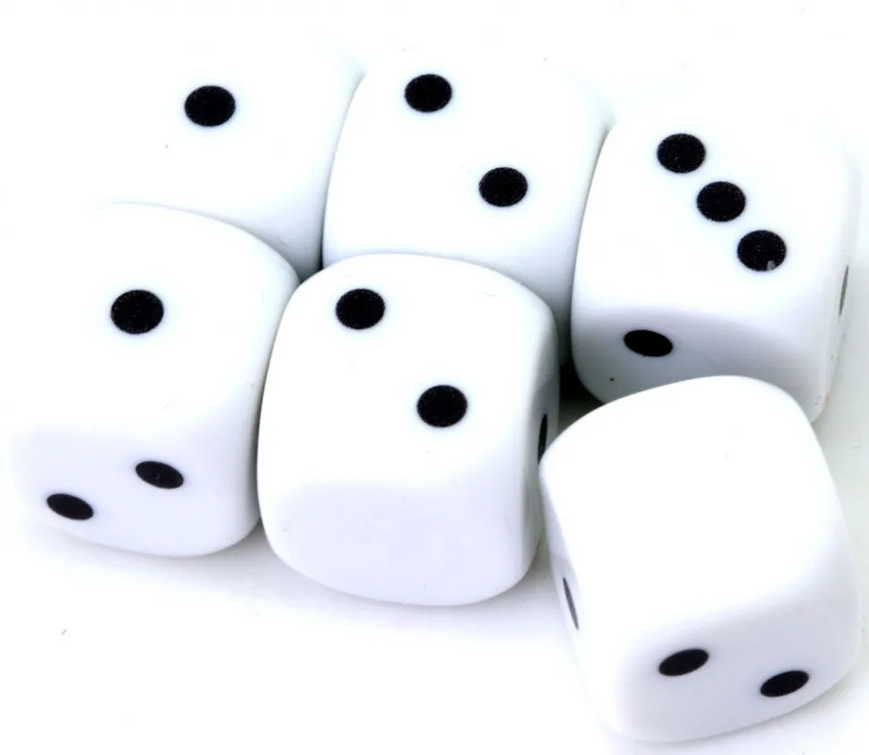 Dé 18 mm en plastique blanc vendu à l’unité