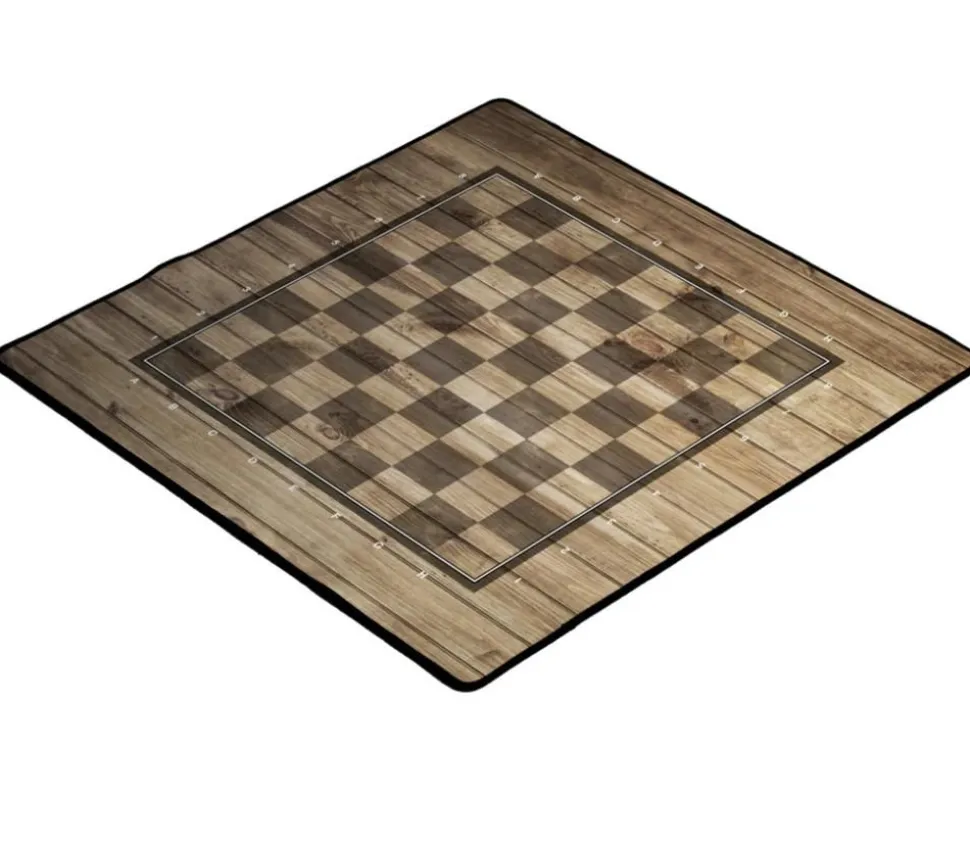 Echiquier tapis effet bois et naturel pour pièces échecs taille 2 ou 3 (non fournies)