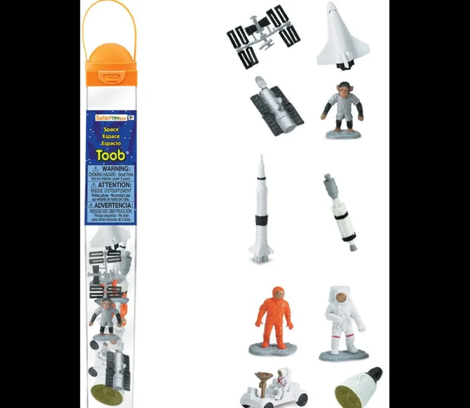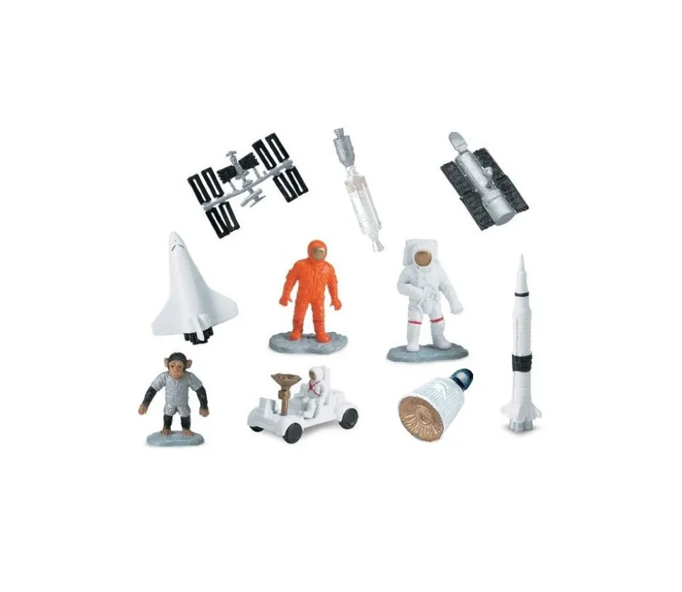 10 figurines de jeu sur le thème de l’espace. Jouet d’environ 6 cm pour les petits astronautres en herbe. Fusée, navette, cosmonautes , 1 singe astronaute, des réacteurs, 1 engin lunaire… 10 figurines livrés dans un tube de rangement transparent facile à emmener partout. Support éducatif de jeu complet pour jouer, apprendre et comprendre l’épopée de l’espace.