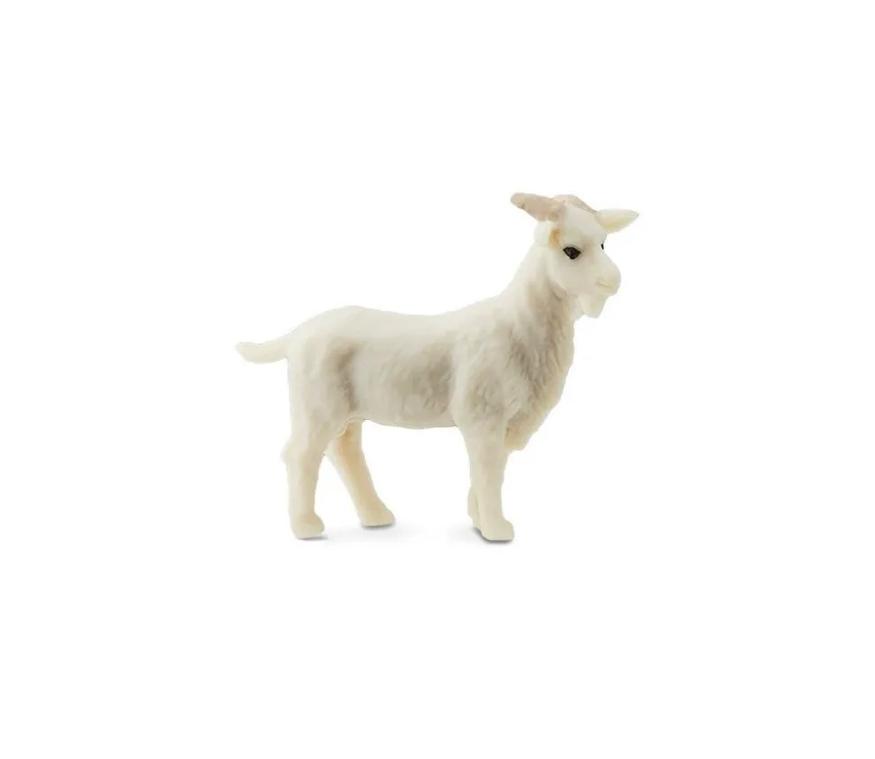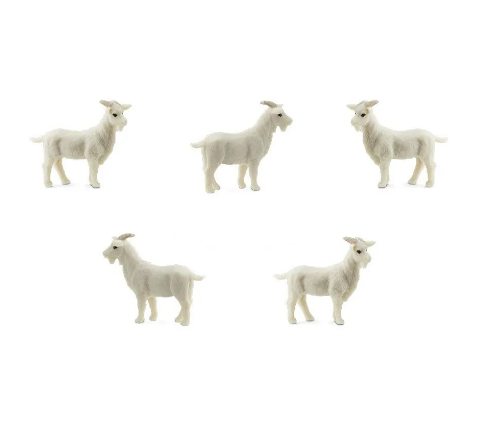 Mini chèvre jouet avec un aspect très vivant, agréable au toucher. Ces mini figurines de jeux chèvres sont peintes à la main. Plastique semi-mou.