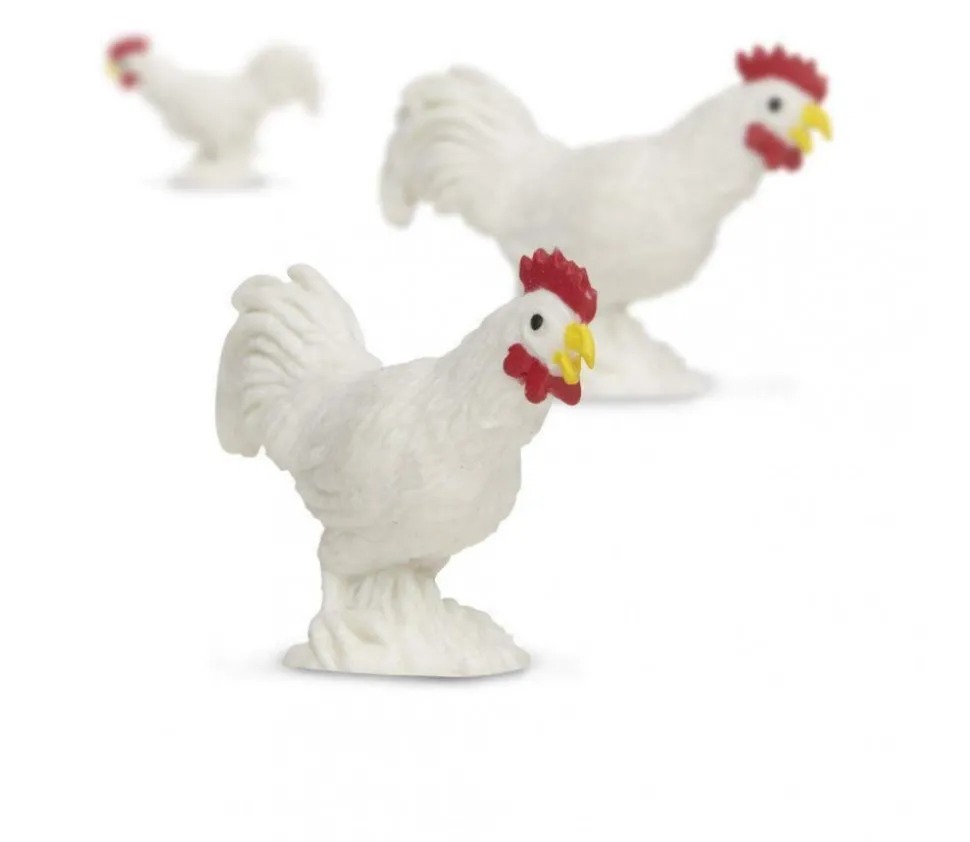 Mini figurine coq. Miniature coq blanc. De jolis animaux de la ferme en taille mini pour décoration, jouet, bricolage, pion de jeux. Animal de la ferme ressemblant et bien fini. Dimensions du coq: hauteur 2 cm, largeur 1 cm, longueur 1.9 cm
