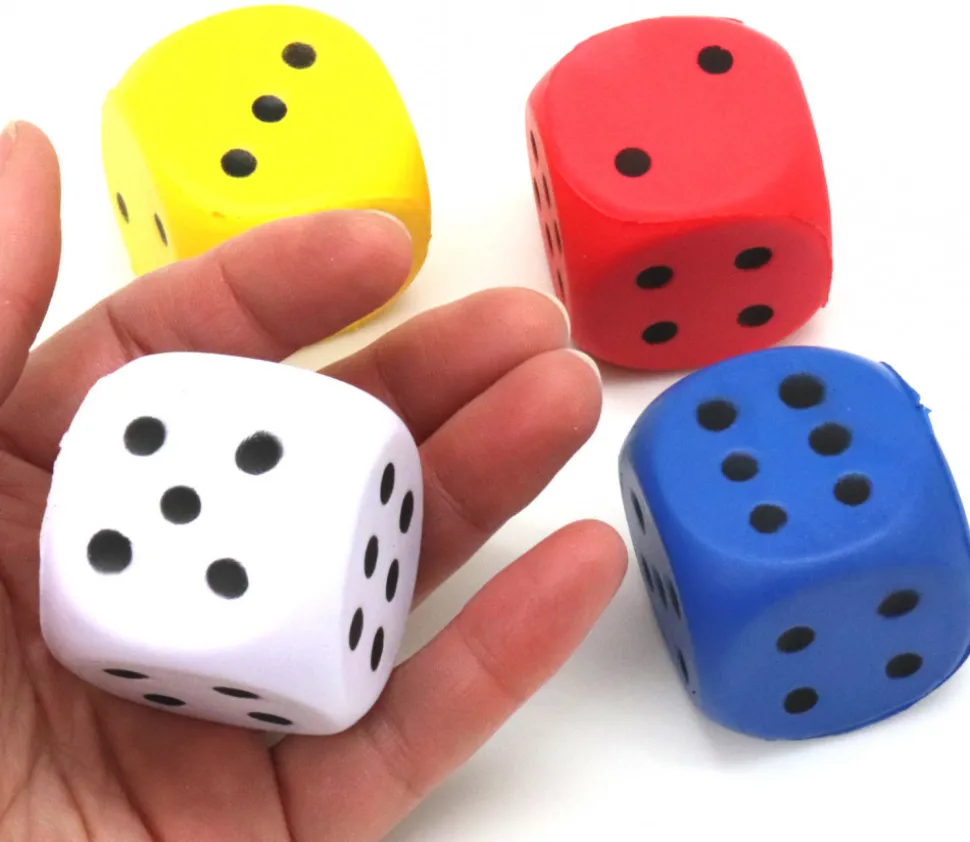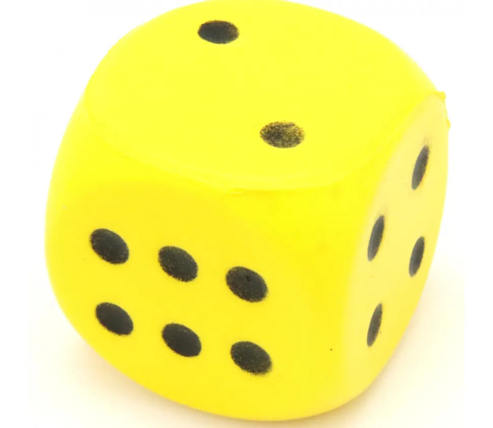 Grand dé en mousse en 4 cm de couleurs avec points noirs. Léger et silencieux. Ultra lisible.