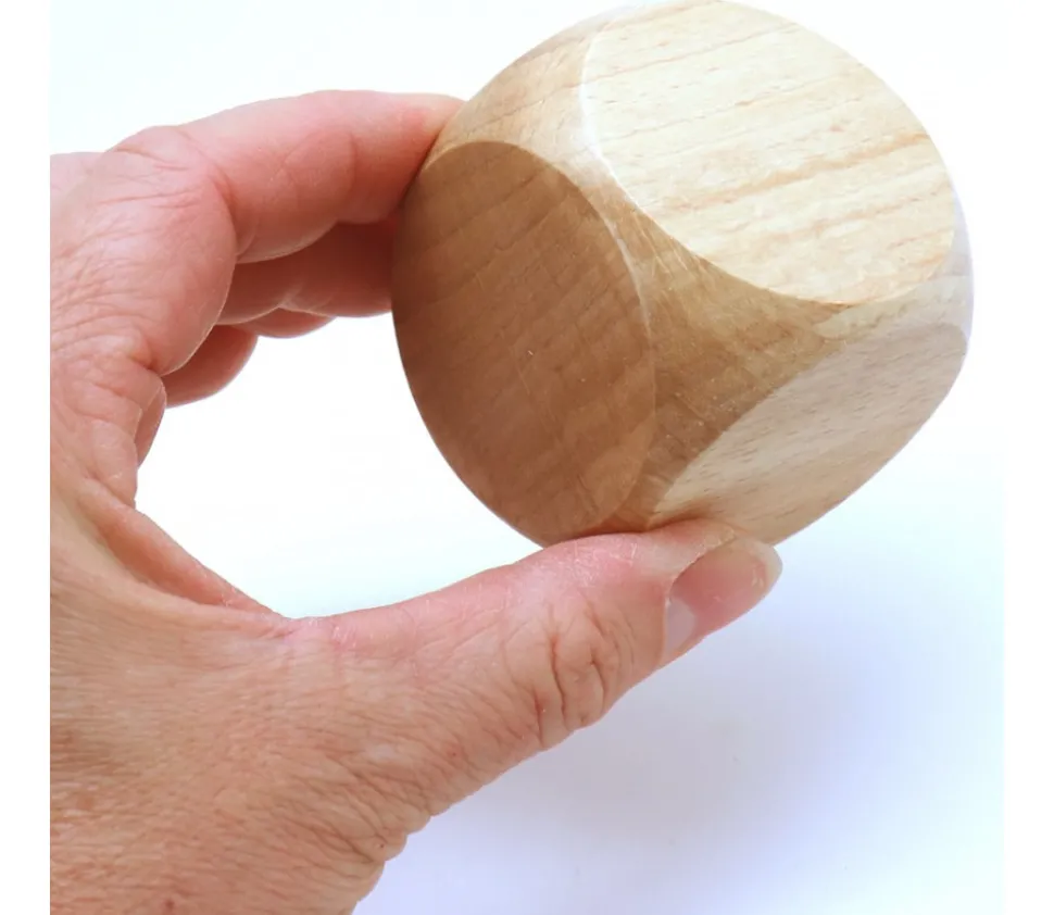 Dé bois fabriqué en France avec les 4 coins arrondis pour faciliter le lancer lors de vos jeux. Dé de très grosse taille plus destiné à des animations qu’à une utilisation familiale. Dés en bois très résistant.