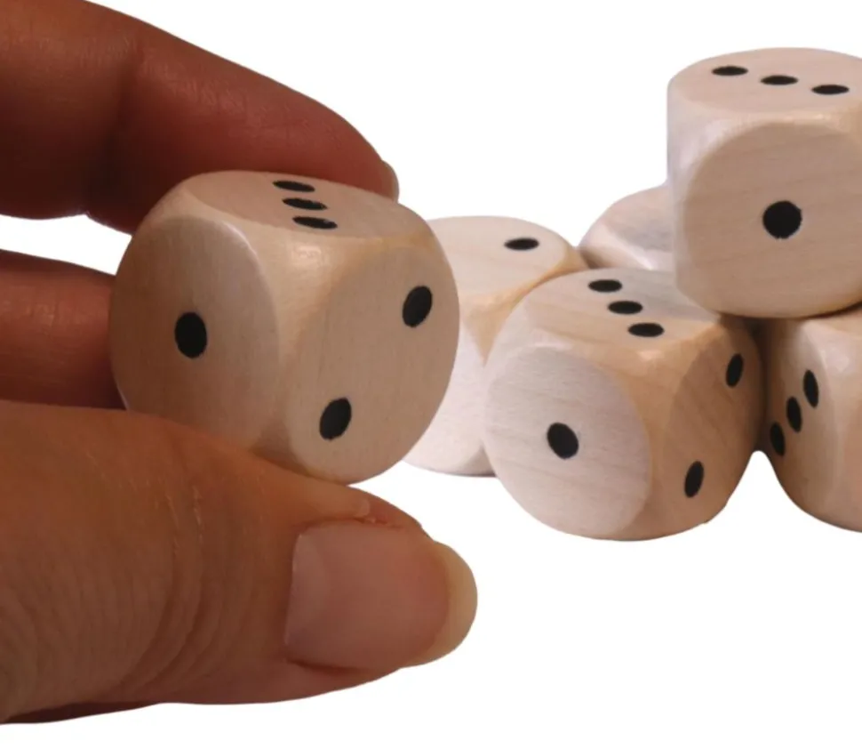 Dé à jouer de 1 à 3 avec les points. Grosé en bois naturel avec coins arrondis. Gros Dé de 20 mm de côté. Faces gravées en noir avec les points ainsi 1, 2, 3, 1, 2, 3.