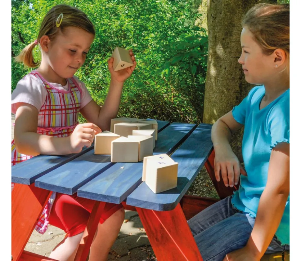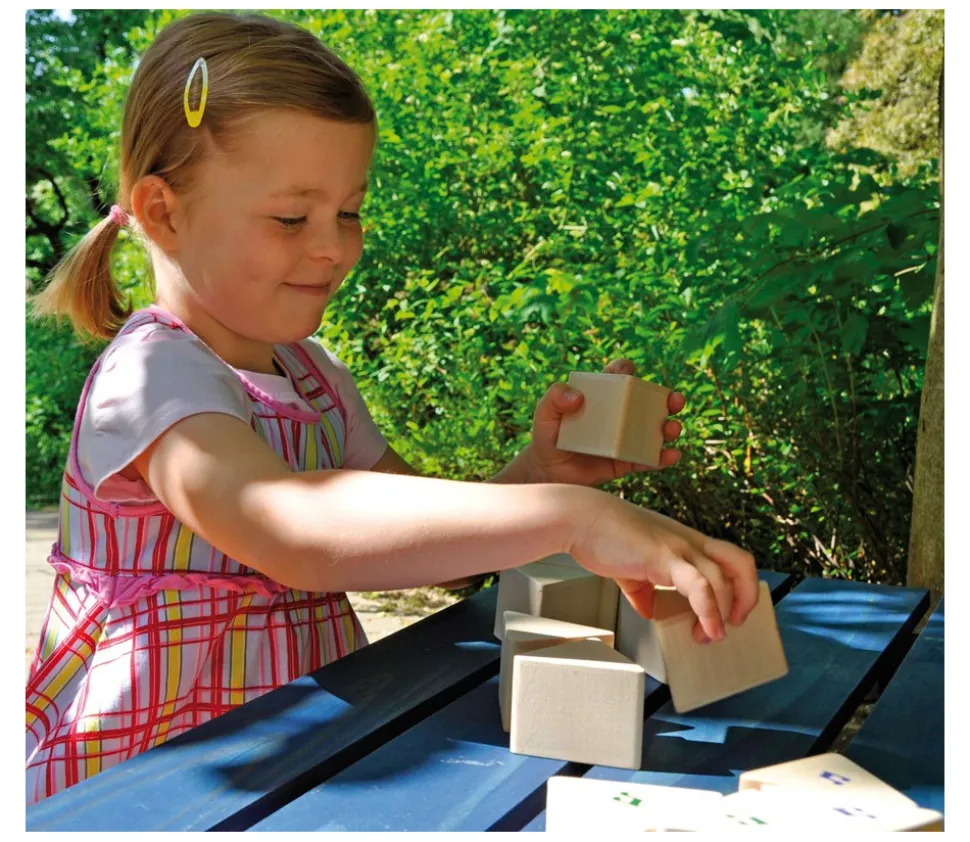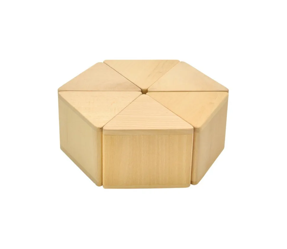 12 prismes en bois de 7.1 x 7.1 x 7.1 cm. Hauteur 5.8 cm.