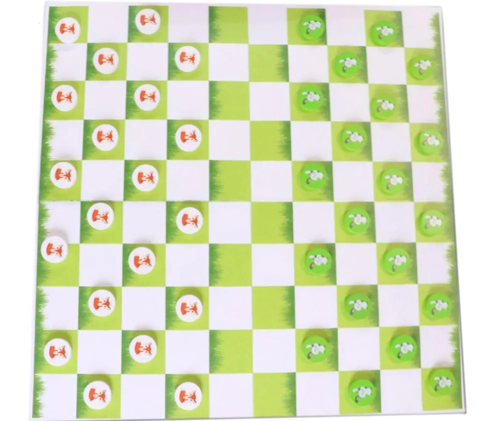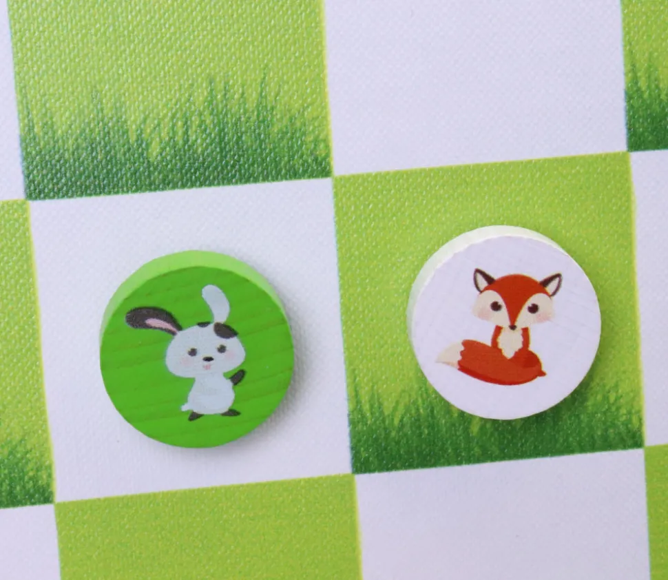 Avec ces couleurs attrayantes blanche et verte, et ce duel lapin-renard dans la prairie, cette revisite originale de ce grand classique du jeu de dames suscitera l’intérêt des enfants et permettra d’entrainer leur concentration.