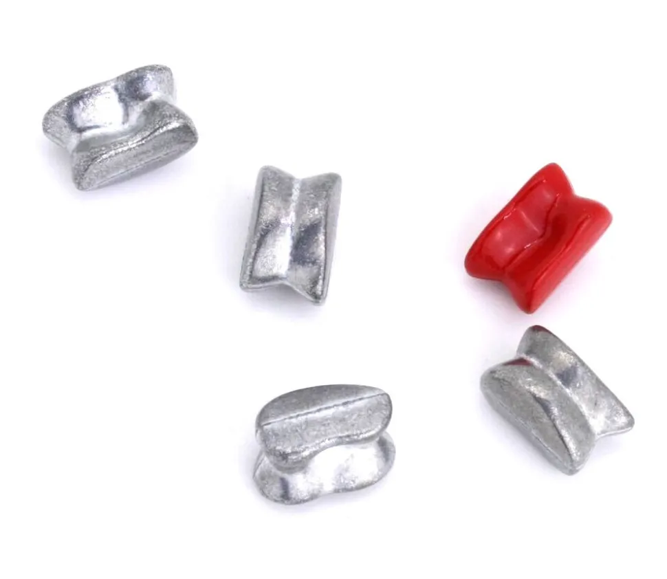 Ce set est composé de 5 osselets en métal : 4 argenté et 1 rouge