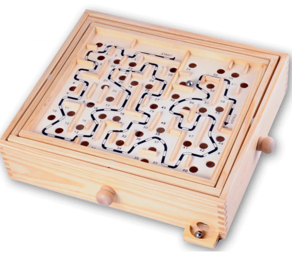 Jeu de labyrinthe en bois pour tester votre adresse. Un excellent jeu en bois pour s’amuser seul ou en challenge avec des amis.