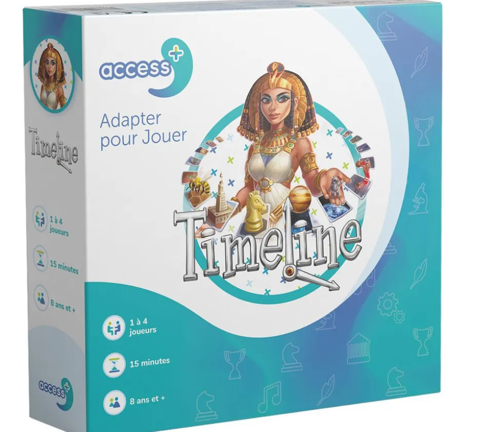 La taille des cartes a été augmentée pour en faciliter la manipulation, les évènements ont été soigneusement sélectionnés pour les rendre accessibles au plus grand nombre, et un paquet de cartes Expériences personnelles a été créé spécialement pour la version Access+ : grâce à celui-ci, les joueurs peuvent se remémorer les évènements de leur propre vie.